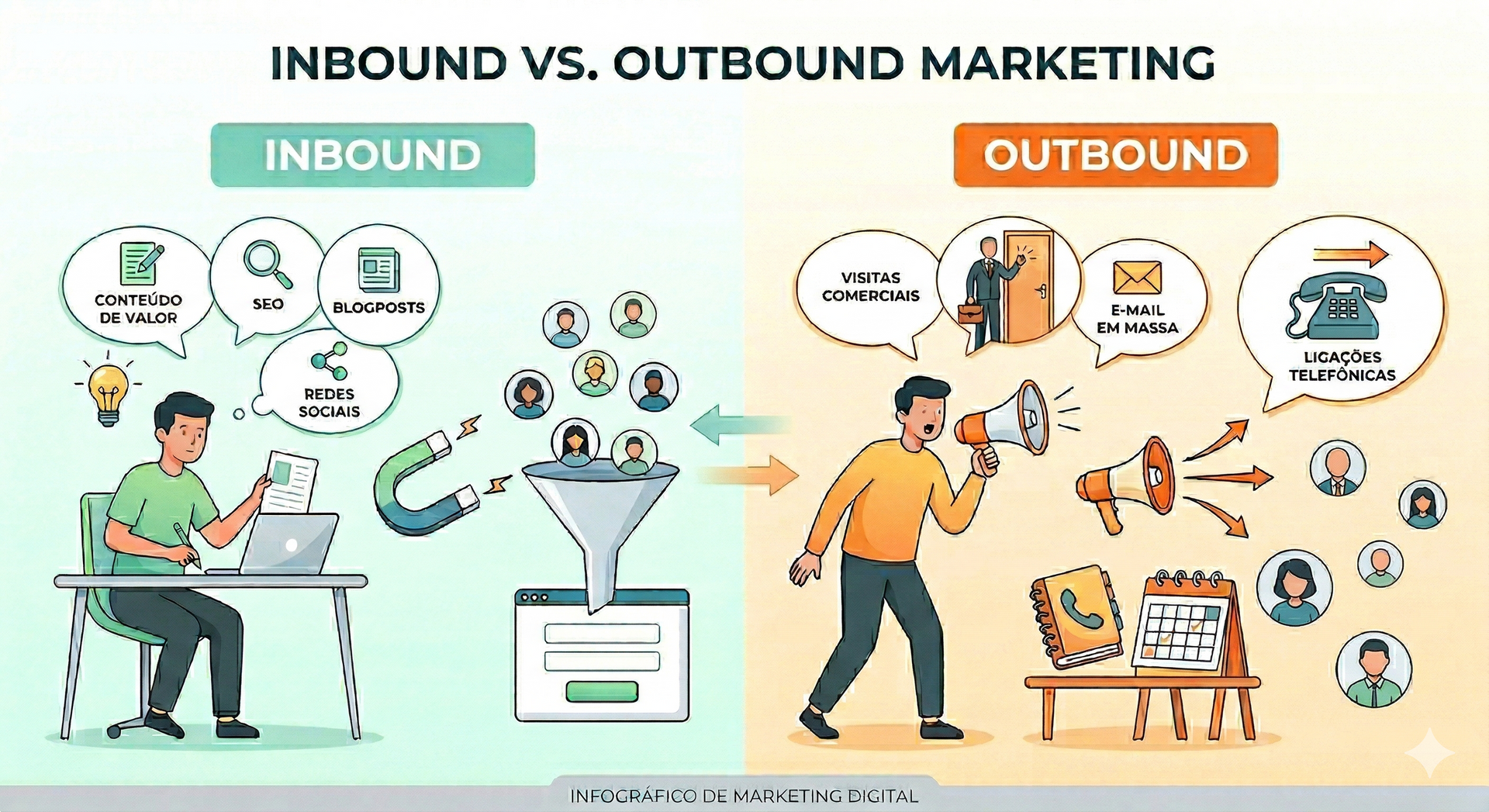 Mais do que escolher entre inbound ou outbound, o foco está em entender como cada estratégia contribui dentro do processo comercial.
